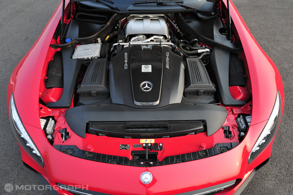 가장 큰 변화는 엔진이다. AMG GT에 탑재되는 4.0리터 V8 바이 터보 엔진은 새로운 메르세데스-AMG를 상징한다. SLS AMG에 탑재되던 엔진과 비교해 배기량은 2.2리터, 길이는 88mm 줄었고, 무게는 32kg 가벼워졌다.