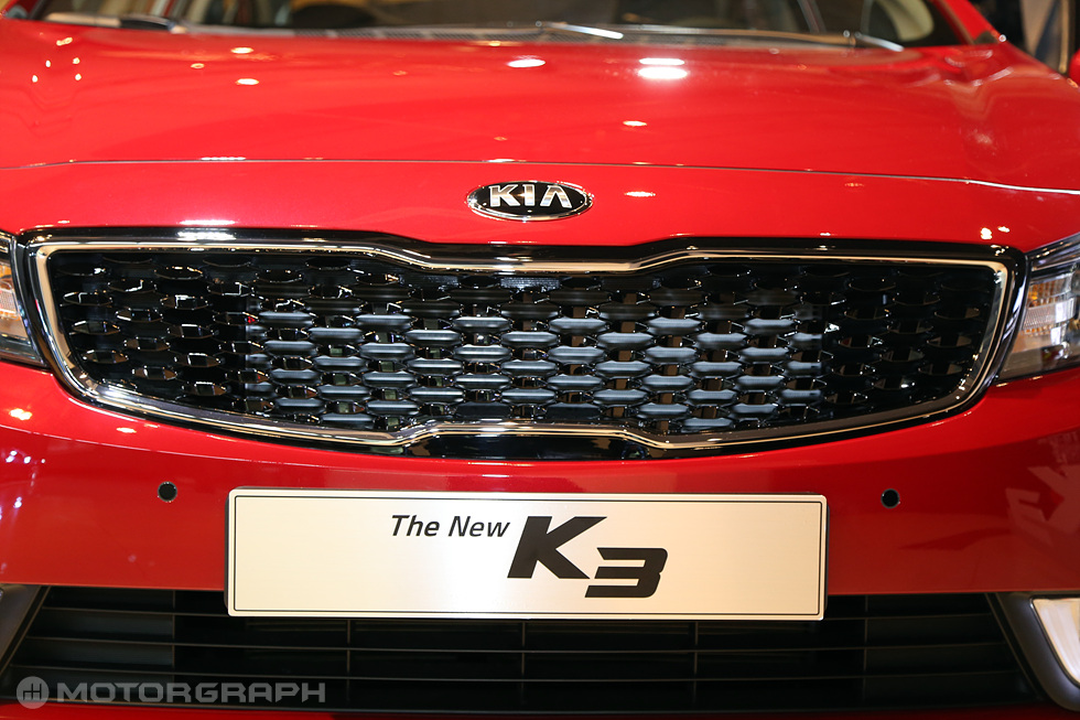 K3 페이스리프트의 외관은 기존에 비해 세련된 모습으로 다듬어졌다. 전면부는 라디에이터 그릴 크기를 키웠고, 헤드램프와 이어진 모양으로 디자인됐다. 범퍼 하단 공기흡입구는 다듬어졌고, 좌우 양쪽 끝에는 에어커튼이 적용됐다.