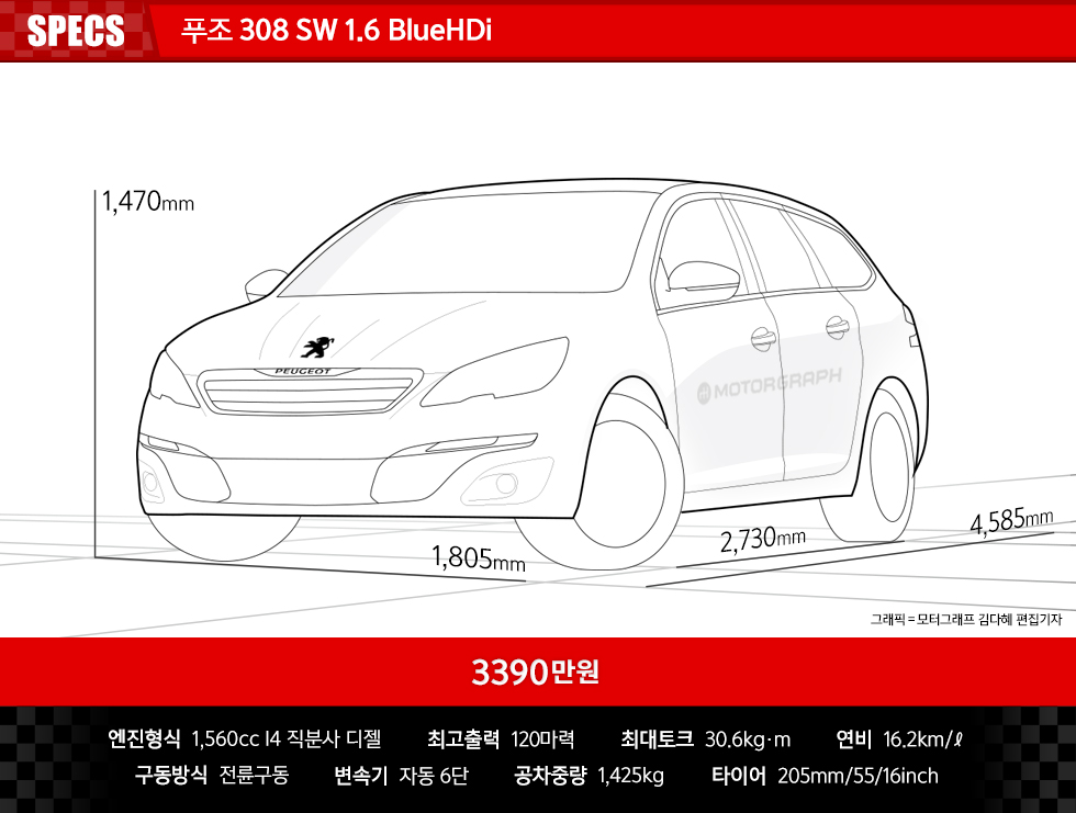 308은 푸조의 대들보다. 308을 중심으로 푸조의 변화가 시작됐다. 새로운 플랫폼과 디자인을 적용했고, 무척 깐깐한 배출가스 기준도 만족시키는 디젤 엔진이 탑재됐다.