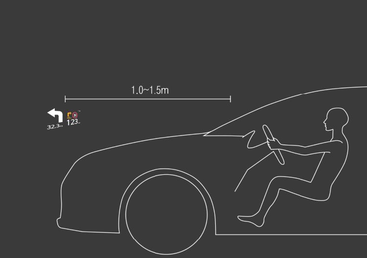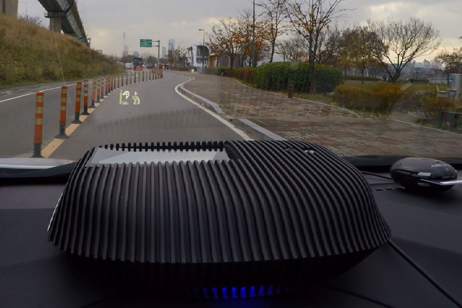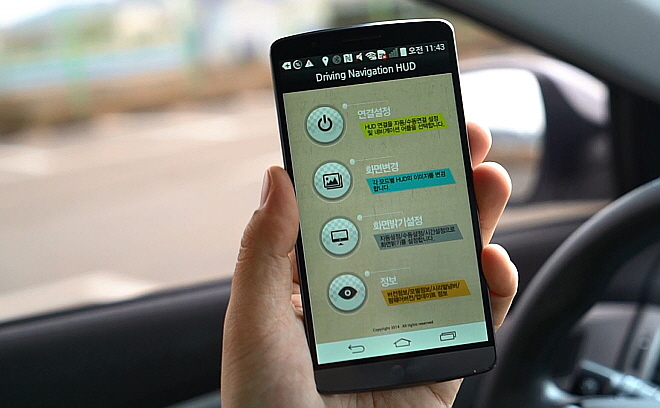 스마트폰과 연동된 내비게이션 정보는 운전자 시야 1~1.5m 앞에 가상 화상으로 나타난다. 고급차에 장착된 것과 같은 방식이다. 보는 대상이 멀리 있어야 눈의 피로가 적어지기 때문이다.