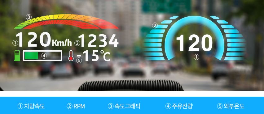 차량내 컴퓨터(ECU)와 연결해 다양한 정보도 제공한다. OBD라고 하는 커넥터를 통한 것인데, 내비게이션을 작동시키지 않더라도 자동차의 속도와 엔진 회전수, 주유량 등 다양한 정보를 앞유리에 비춰준다.