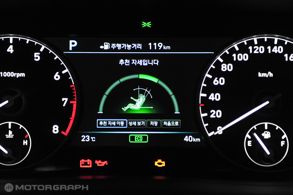 서울대 의대와는 산학합동연구를 통해 세계 최초로 ‘스마트 자세제어 시스템’을 개발했다. 스마트 자세제어 시스템은 운전자의 키, 앉은키, 몸무게 등 신체 체형 정보를 입력하면 이를 분석해 자동으로 시트, 스티어링휠, 아웃사이드 미러, 헤드업 디스플레이 등을 조절한다.