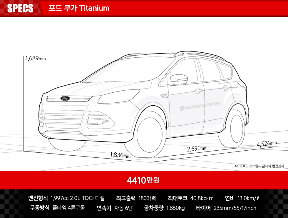 쿠가는 이스케이프의 또 다른 이름이다. 원포드 전략으로 두 차는 크게 다를 것이 없다. 다만 쿠가는 유럽 시장을 주무대로 하기 때문에 디젤 엔진이 탑재됐다. 또 유럽에서 생산된다는 점도 다르다. 포드코리아도 이 점을 크게 강조하고 있다.
