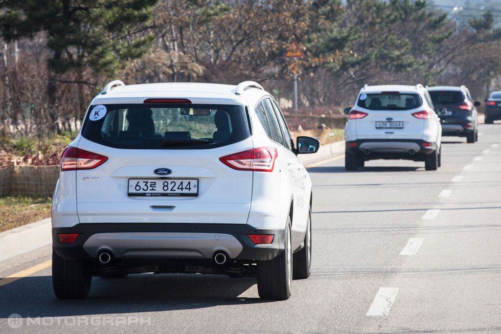 그리고 쿠가는 차체 크기에 비해 지상고가 높다. 시트포지션도 높다. 덕분에 시야가 좋고, 운전이 편하긴 하지만 코너에서는 무게 중심 이동이 큰 편이다. 서스펜션의 대응과 탁월한 편이 아니다. 같은 뼈대를 쓰는 MKC와 크게 다른 부분이며, 티구안은 물론 투싼보다 코너에서의 움직임이 날래지 못하다.