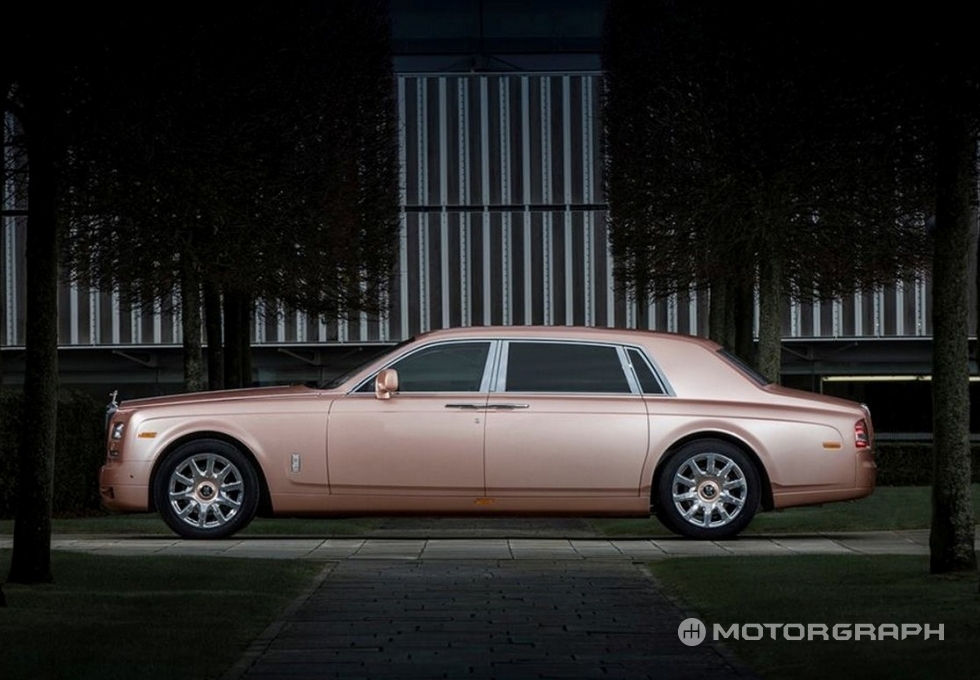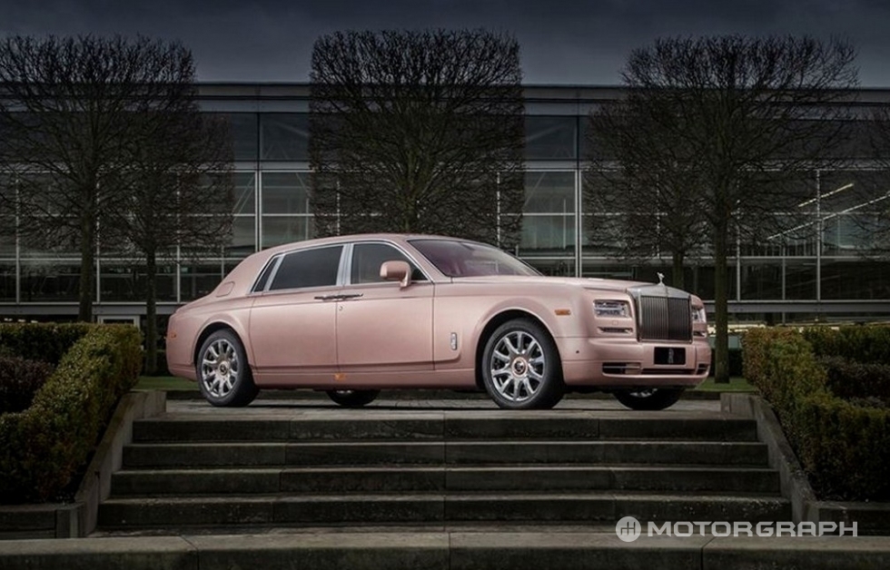 13일(현지시간), 롤스로이스는 희한한 페인트가 적용된 선라이즈 팬텀(Sunrise Phantom)을 공개했다. 이 차는 팬텀의 롱휠베이스 버전인 팬텀 익스텐디드 휠베이스(EWB) 모델을 기반으로 맞춤 제작됐다. 특히, 외관엔 분홍색을 칠했다. 완전한 분홍은 아니고 애플 아이폰6의 로즈골드가 연상되는 색이다.