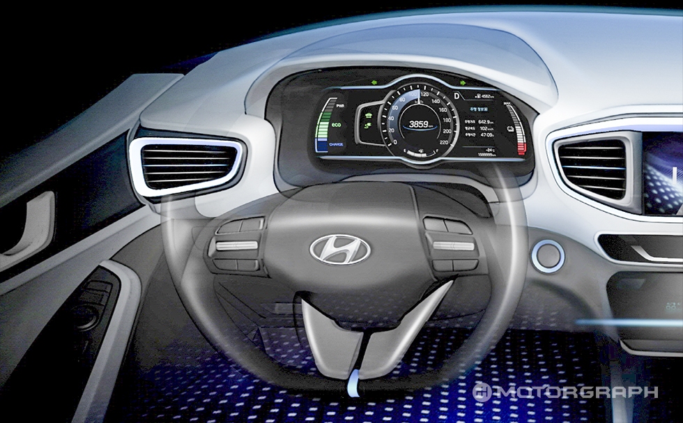 현대차는 16일, 친환경 전용 모델 '아이오닉(IONIQ)' 하이브리드의 렌더링 이미지를 공개했다.