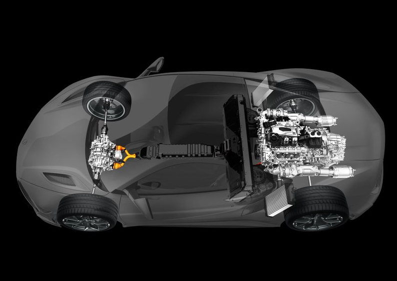 V6 DOHC 트윈터보 엔진과 3개의 전기모터, 9단 듀얼클러치 변속기가 탑재됐다. 3개의 전기모터 중 2개는 각각 앞바퀴를 돌린다. 각각의 바퀴를 돌리기 때문에 자연스럽게 토크 백터링 기능까지 담당한다. 나머지 한개는 엔진과 변속기 사이에 장착돼 가속 및 제동, 변속 성능 등을 보조한다.