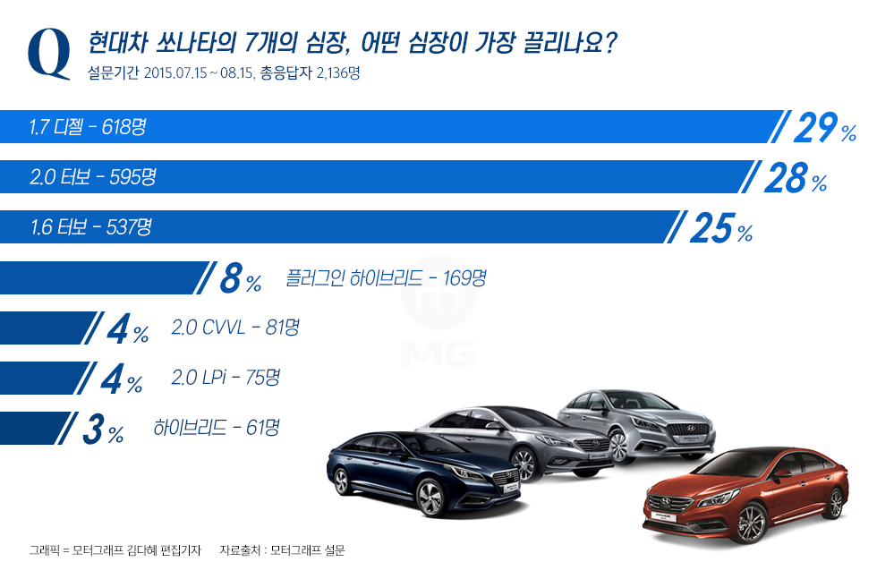 업계 한 관계자는 “현대차가 쏘나타의 엔진 라인업을 가솔린부터 LPi, 디젤, 1.6 터보, 2.0 터보, 하이브리드, 플러그인 하이브리드까지 7개로 늘린 이유도 바로 이것”이라며 “비록, 택시와 외형은 같을지라도 다양한 엔진 라인업을 통해 소비자 니즈를 맞춰 판매량을 늘리기 위함”이라 설명했다.