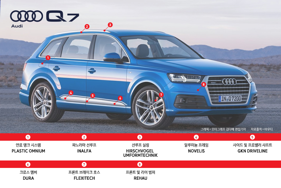 지난해 1월 미국에서 열린 ‘2015 디트로이트 모터쇼’를 통해 아우디는 신형 Q7을 세계 최초로 공개했다. 신형 Q7은 폭스바겐그룹의 신형 MLB 플랫폼을 통해 개발됐다. 벤틀리 벤테이가도 이 플랫폼을 사용하며, 향후 출시될 폭스바겐 신형 투아렉, 포르쉐 신형 카이엔 등에도 적용될 예정이다.