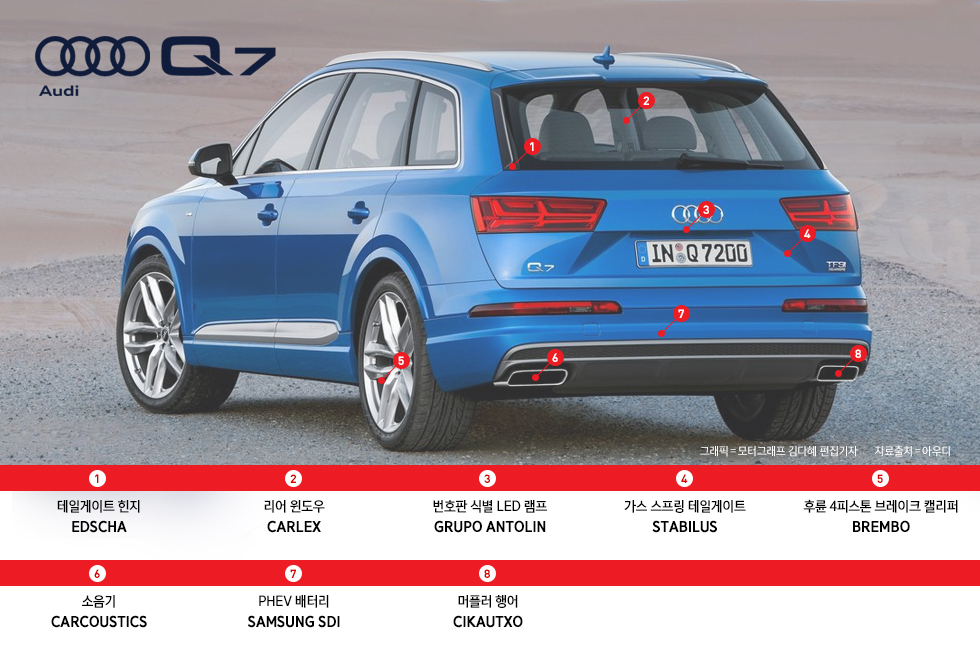 2005년 프랑크푸르트 모터쇼를 통해 공개된 아우디 최초의 대형 SUV Q7이 무려 10년만에 새롭게 태어났다. 2세대 신형 Q7는 아우디의 슬로건에 걸맞게 혁신적인 기술의 진보를 거쳤다. 뼈대와 구조가 개선됐고, 알루미늄을 적극적으로 사용한 결과 최대 325kg이나 가벼워졌다. 아우디의 최신 디자인과 고급스러운 소재로 무장했으며, 다양한 파워트레인, 첨단 안전 장비 등이 더해졌다. 신형 Q7은 아우디가 만들 수 있는 최고의 차로 거듭났다.