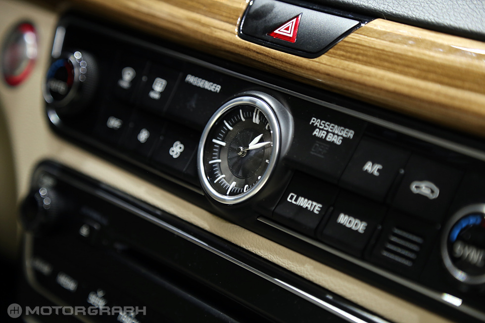 실내는 이전과 달리 수평 디자인이 적용돼 넓고 정돈된 이미지를 강조한다. 또, 센터페시아 디스플레이 영역과 컨트롤 영역을 분리하고 공조기 컨트롤러와 인포테인먼트 조작 버튼은 상하로 구분해 배치했다. 조작 빈도가 높은 주행 관련 스위치는 변속기 주변에 배치해 편리하게 만들었다. 또, 양문형 콜솔 암레스트를 적용했고, 아날로그 시계도 탑재했다.