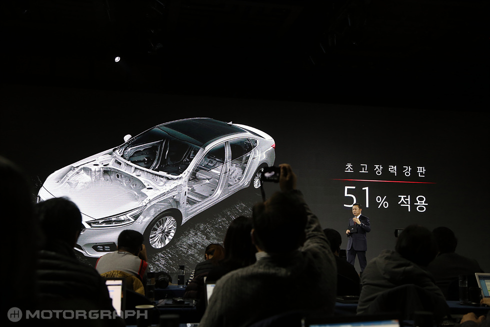 신형 K7은 안전성 및 정숙성도 대폭 강화됐다. 일반 강판 대비 무게는 10% 이상 가벼우면서도 강도는 2배 이상 높은 선진고장력 강판(AHSS) 적용비율을 51%로 확대했고, 구조용 접착제를 확대 적용해 충돌 안전성과 주행성능을 개선했다. 또, 휠 강성 증대와 이중접합 차음유리 적용, 섀시 구조 개선 등을 통해 정숙성을 높였다.