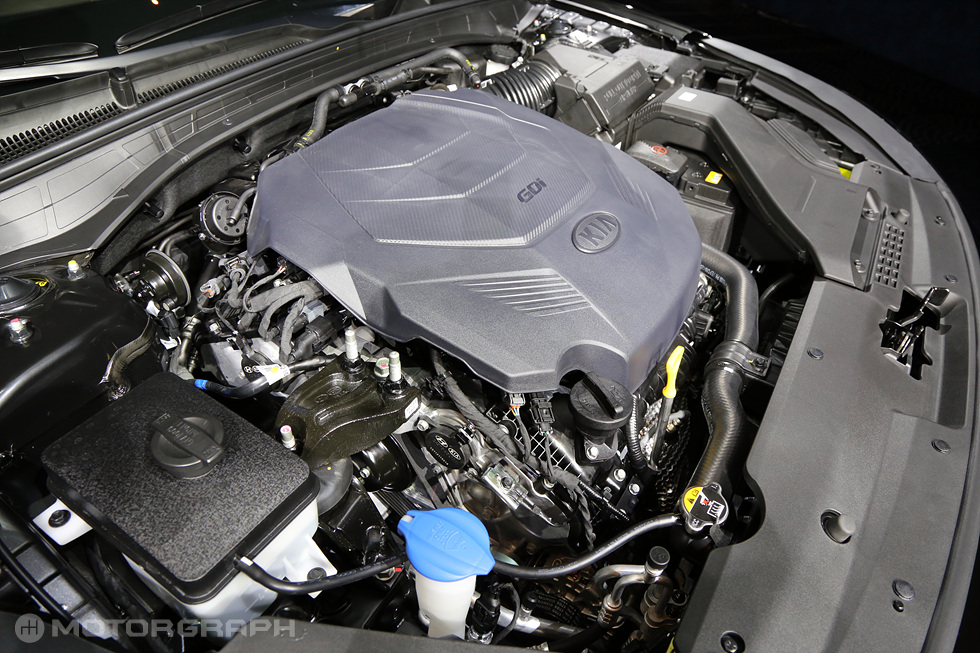 2.4 모델은 2.4리터급 세타2 GDI 가솔린 엔진이 장착돼 최고출력 190마력, 최대토크 24.6kg.m의 성능을 갖췄다. 이전에 비해 출력과 토크가 각각 11마력, 0.9kg.m씩 감소했지만 저중속 영역 실사용 구간의 가속감을 향상시켜 경쾌한 주행감각을 제공한다고 기아차는 설명했다. 연비는 복합 기준 11.1km/l다(17인치 타이어, 신연비 기준).