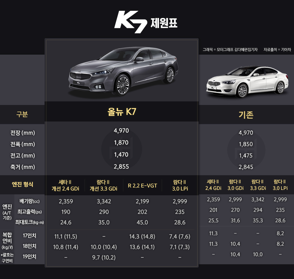 신형 K7은 지난 2009년 출시된 1세대 모델 이후 약 7년만에 선보이는 풀체인지 모델로, 현대기아차 최초로 전륜 8단 자동변속기가 적용된 것이 특징이다.