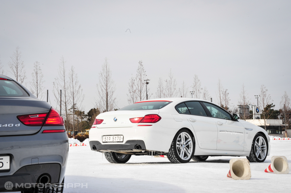 코스를 여러번 달린 후, BMW의 전자식 사륜구동 시스템 xDrive와 윈터타이어가 장착된 640d xDrive에 올랐다.