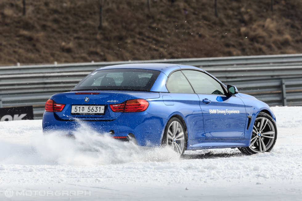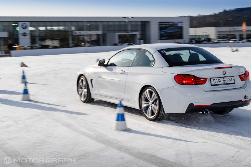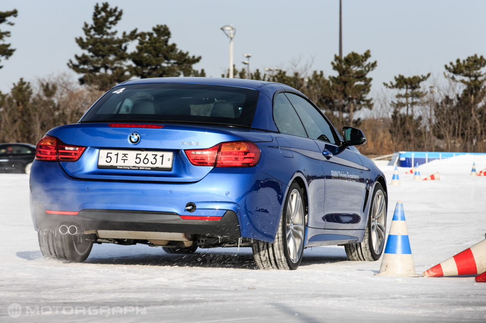 확실히 사륜구동 시스템과 윈터타이어가 결합되니, 더욱 안정적으로 코스를 달릴 수 있었다. 특히 네바퀴가 모두 구동력을 갖고 있기 때문에 428i처럼 뒷바퀴가 휠스핀을 일으키며 출발하는 일은 없었다. 또 가속도 원활했고, 방향 전환을 할때도 전자장비가 개입하는 횟수가 크게 줄었다.