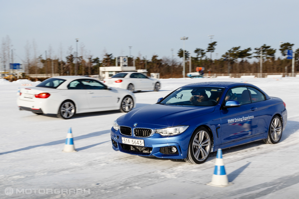 눈길은 마른노면과 얼마나 다른지에 대한 체험이 먼저 이뤄졌다. 후륜구동인 428i 컨버터블에 한국타이어의 윈터타이어 아이셉트 에보2가 장착됐다.