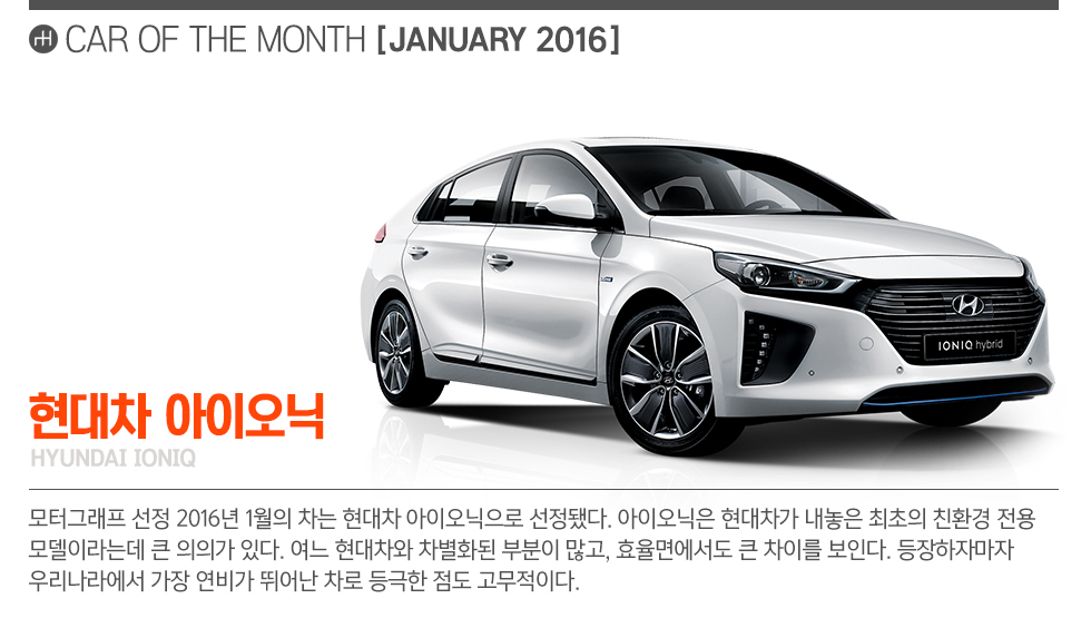 김상영 : 현대차의 2016년 첫차다. 또 첫번째 친환경 전용 모델이다. 아이오닉엔 현대차가 최초로 시도하는 것이 많다. 그동안 현대차가 무언가를 처음 내놨을땐 어설픈 부분이 많았는데, 아이오닉은 다르다. 기대보다 완성도가 높았다. 아반떼에 비해 가격은 높지만, 도요타 프리우스를 생각하면 몹시 저렴하다. 프리우스가 코롤라의 절차를 밟게 되는 것이 아닐까 두렵다.