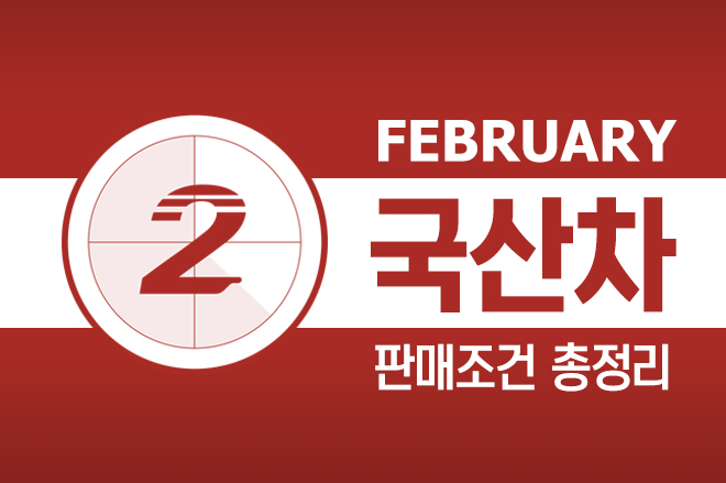 다음은 국내 완성차 업체들의 2월 판매조건이다. 자세한 사항은 각 브랜드 홈페이지를 통해 확인할 수 있다.