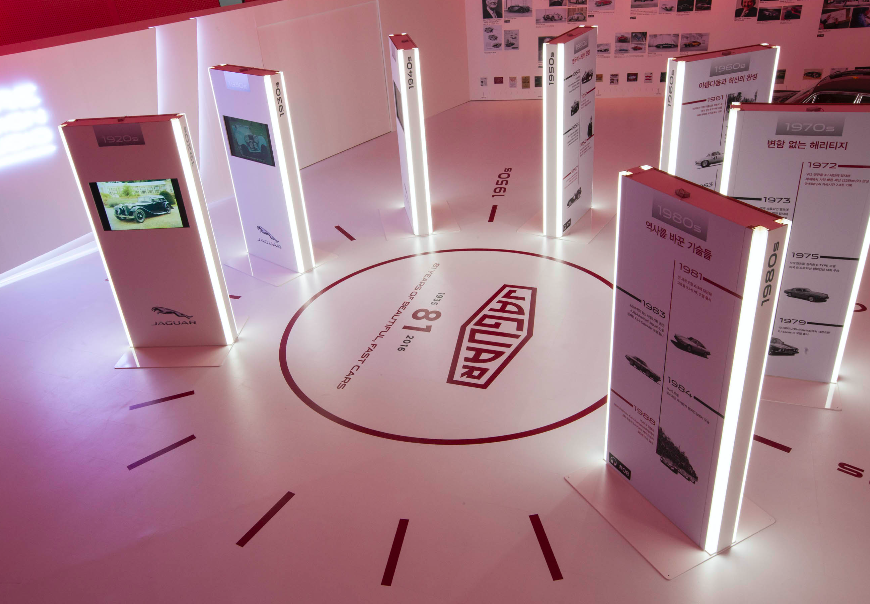 재규어 XJ 레어 디자인 스튜디오에는 1922년부터 시작된 재규어의 역사를 사진과 영상을 통해 연대기로 볼 수 있게 했다. 1968년 처음 등장한 1세대 XJ를 비롯해 이탈리아 디자인 회사인 피닌파리나가 꾸민 1987년형 3세대 XJ도 공수해 전시했으며, 디자인 총괄인 이안 칼럼의 인생 스토리와 스케치 등 다양한 소장품도 전시했다.