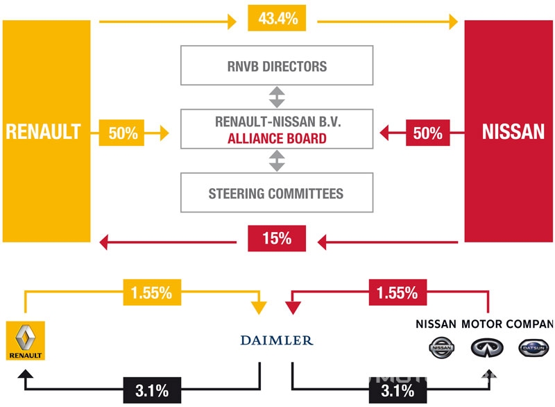 닛산자동차도 심상치 않다. 닛산은 지난 16년간 르노와의 얼라이언스 관계를 이어 왔지만 작년 르노의 대주주인 프랑스 정부의 개입으로 르노와 닛산 사이에서 권력 싸움이 일어났기 때문이다. 프랑스 정부가 르노의 주식 보유량을 늘린데 이어, 법률을 바꾸면서까지 의결권을 두배로 늘린게 문제였다. 프랑스 정부는 2대 주주인 닛산을 배제하고 르노를 일방적으로 지배하면서 43.4%의 지분을 갖고 있는 일본 닛산의 지배적 권한까지 갖게 되기 때문이다. 이같은 상황에 대해 닛산이 강력히 반발하고 있으며 결국 닛산이 르노와의 관계를 청산하고 일본 자동차 제조사와의 새로운 얼라이언스를 구상 할 가능성마저 점쳐진다.