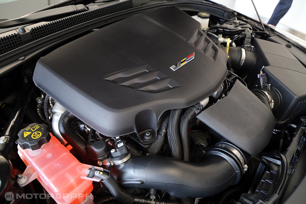 캐딜락은 엔진에 티타늄과 알루미늄 합금소재의 터빈이 장착돼 터보랙을 최소화했고, 각각의 터보차저에 진공 압력 조절 밸브를 장착해 다양한 주행환경에서 최상의 성능을 이끌어 낸다고 설명했다. 또, 8단 자동변속기는 스포츠모드와 트랙 모드에서 중력가속도(G-Force)를 감지해 상황에 맞는 변속을 제공한다고 전했다. 여기에 트랙 및 드래그 레이스에서 안정적인 초반 가속을 돕는 런치 컨트롤 기능도 더해졌다.
