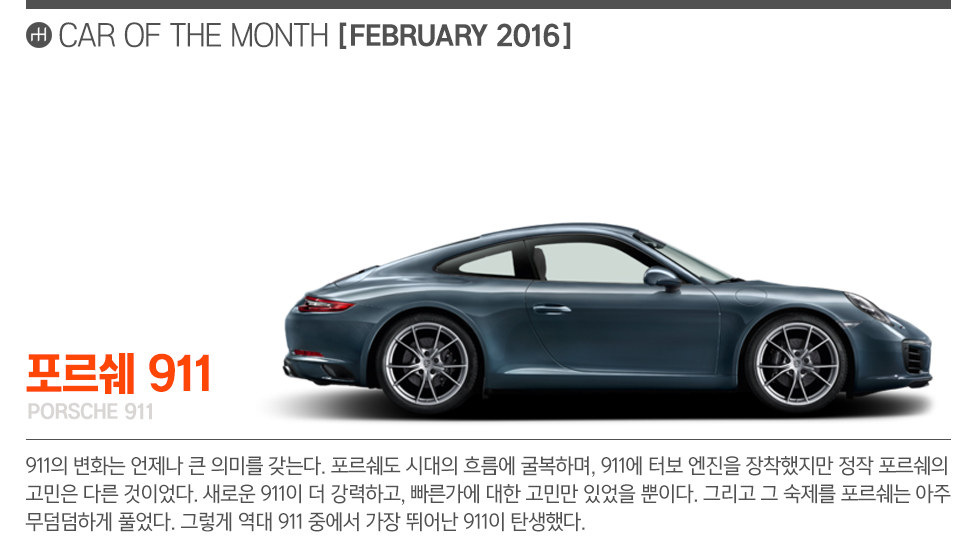 전승용 : 포르쉐가 다소 얌전해졌다고 오해를 받을 수도 있겠다. 카이엔과 파나메라, 마칸 등을 내놓더니 급기야는 911까지 대중적인 요소를 추가했다. 일상 생활에서도 편하게 탈 수 있도록 차고 조절 시스템을 비롯해 한글 지원 터치 내비게이션과 다중 충돌 브레이크 시스템을 탑재하는 등 진입 장벽을 낮추기 위해 노력하는 모습이다. 그러나 걱정할건 없다. 911은 새로운 터보 엔진과 댐핑 컨트롤, 리어 액슬 스티어링, 서스펜션 매니지먼트 시스템 등을 통해 더욱 강력해졌다.