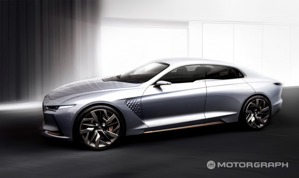 제네시스 G70의 디자인 방향을 알 수 있는 콘셉트카가 공개됐다. BMW 3시리즈를 겨냥한 이 하이브리드카의 이름은 '제네시스 뉴욕'이다.
