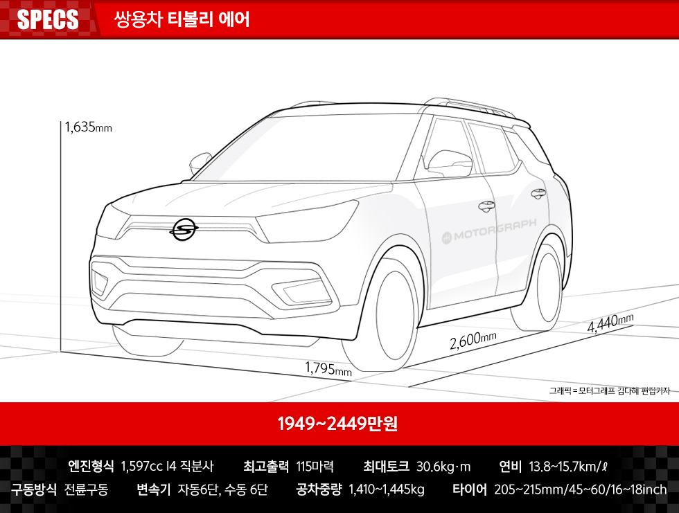 연비도 조금 손해를 봤다. 기존 티볼리 디젤의 연비는 15.3km/l이었으나, 티볼리 에어는 13.8km/l의 복합연비를 기록하고 있다.