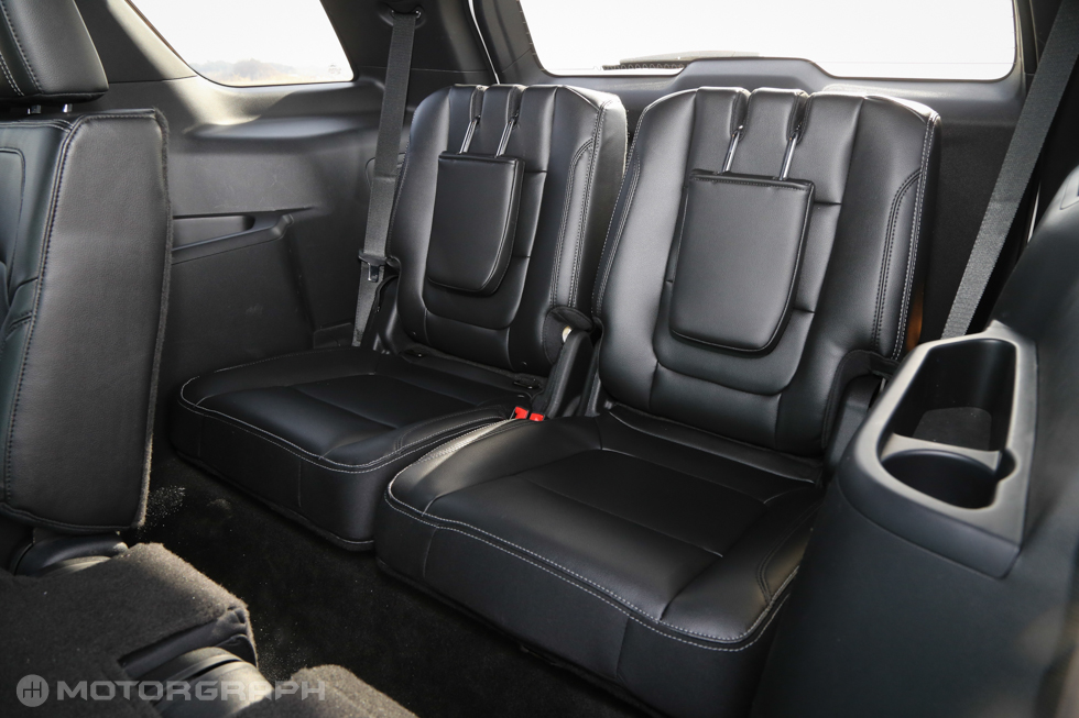 익스플로러의 3열 시트는 버튼으로 손쉽게 접고, 세울 수 있다. 접히는 방식이 독특한데, 차체 밑바닥으로 시트가 바짝 붙는다. 그래서 공간적인 손해를 최소화했다. 시트를 완전히 접으면 평평한 공간이 생기고, 2열 시트까지 접게되면 양문형 냉장고까지 실을 수 있는 공간이 생겨난다. 수치상으로는 무려 2313리터에 달한다.