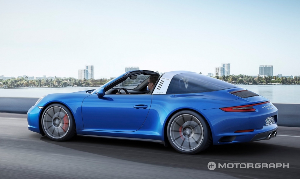 신형 타르가에는 B필러 대신 알루미늄 소재로 제작된 ‘롤-바(Roll-Bar)’가 적용됐으며, C필러 대신 ‘랩어라운드 리어 윈도우’를 갖췄다. 버튼을 누르면 19초 만에 컨버터블 톱이 뒷좌석으로 수납되는 전자동 루프 시스템 방식이다.