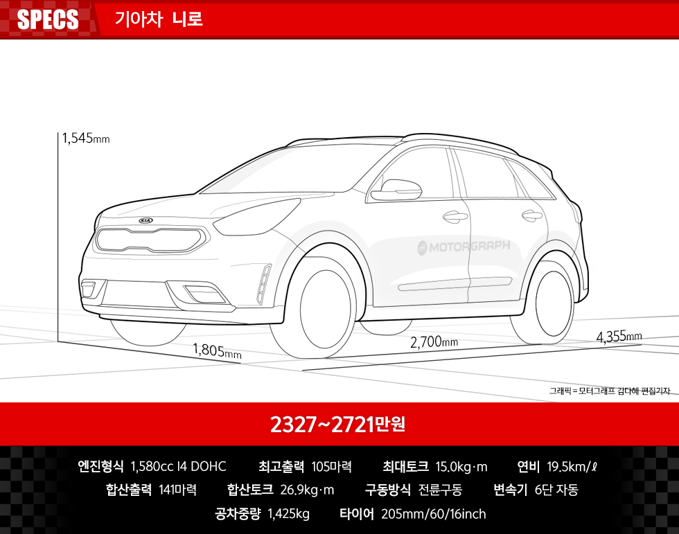 아이오닉은 연비를 중시하면서 머리공간 등 많은 부분을 희생했지만, 기아 니로는 연비를 조금 희생하고도 실내 거주성과 트렁크 공간을 넓혔다. 니로는 SUV 스타일을 강조하면서 18인치 타이어까지 제공하는 점도 차이점이다. 이 플랫폼에 SUV 외관을 선택한건 신의 한수 쯤 돼 보인다. 초소형SUV를 따로 내놓지 않는 그 빈틈에 쏙 들어갈 차다.