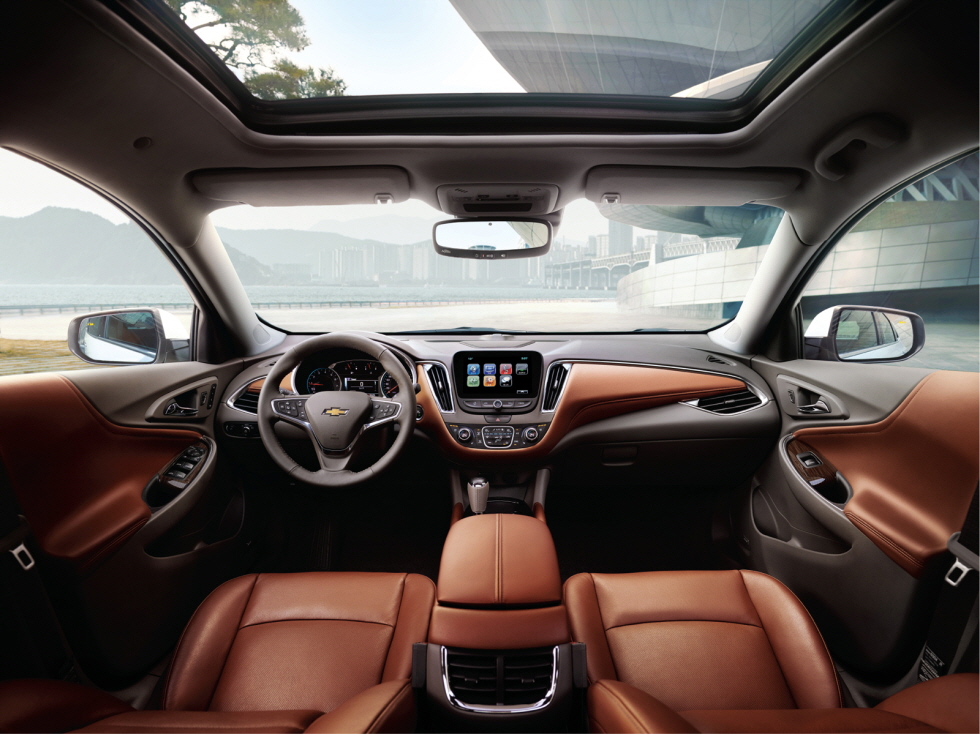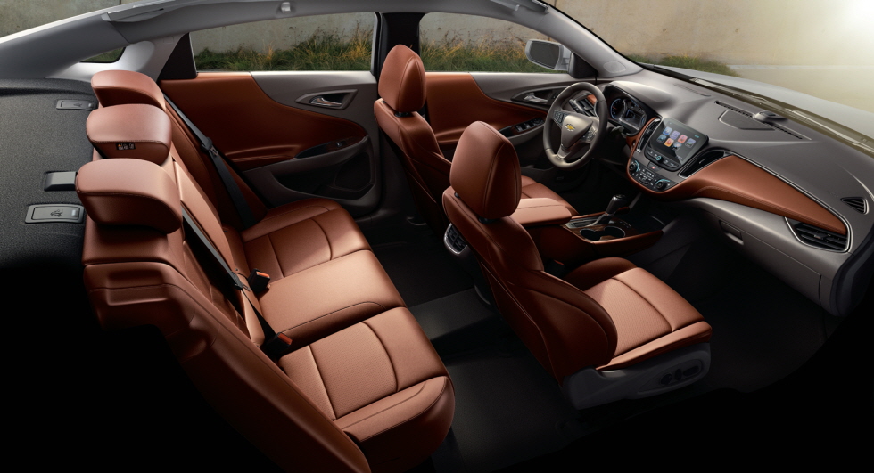 신형 말리부에는 새로운 인테리어가 적용됐다. 스티어링휠과 계기판, 각종 버튼까지 완전히 새롭게 바꿨다. 여기에 중형차급을 뛰어넘는 넉넉한 실내공간을 확보했으며, 인체공학적인 요소를 추가했다.