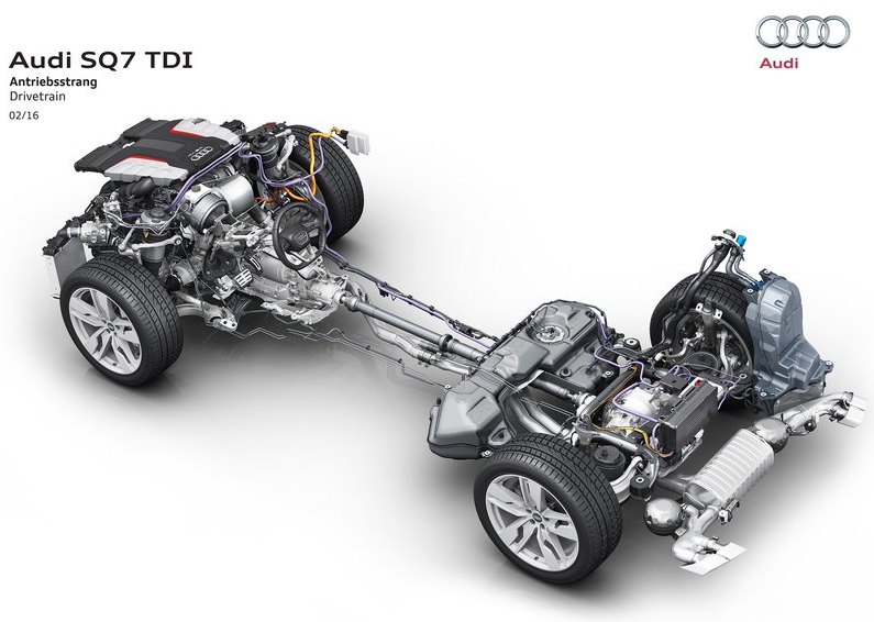 아우디 SQ7는 역대 Q7 중에서 가장 강력한 엔진이 장착됐다. 4.0리터 V8 TDI 엔진은 최고출력 435마력, 최대토크 91.8kg.m의 성능을 발휘한다. 5미터가 넘는 길이, 2톤이 넘는 무게를 가졌지만 정지 상태에서 시속 100km까지 도달하는 시간은 4.8초에 불과하다. 최고속도는 시속 250km에서 제한된다.