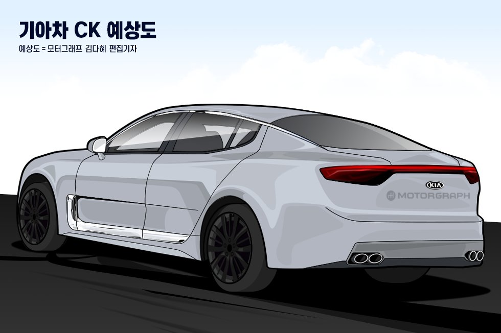 기아차가 내년 선보일 고성능 모델 ‘CK(개발코드명)’ 시험주행차가 국내서 모습을 드러냈다. 국산차에서 흔히 볼 수 없는 스포츠백 디자인이 적용됐으며 모터쇼에서 공개된 'GT 콘셉트'의 디자인을 이어받았다. 모터그래프는 국내에서 촬영된 CK 스파이샷을 바탕으로 신차의 예상 이미지를 만들어봤다.