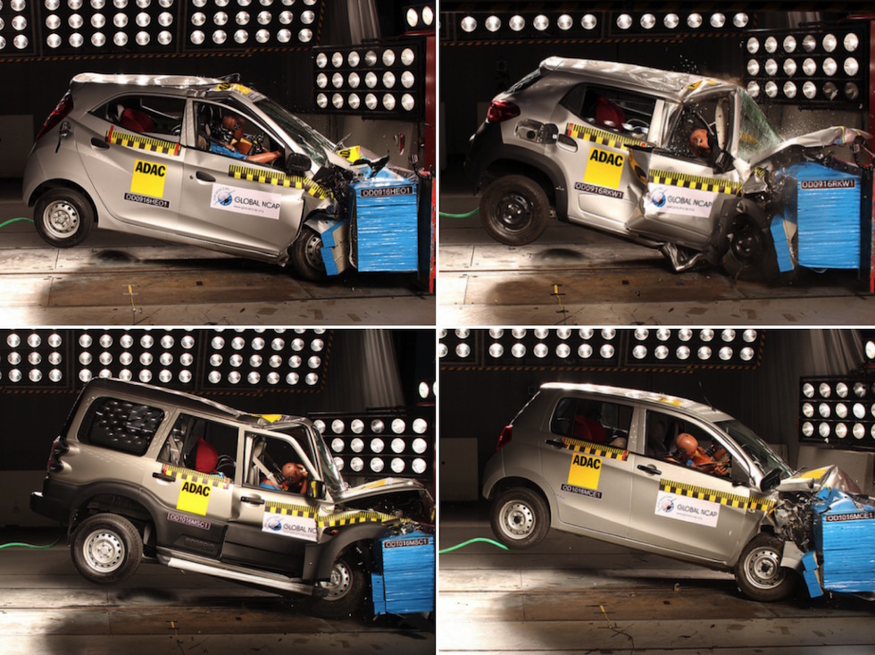 사실 인도에선 오토바이를 대신해주는 초소형차의 가격이 몹시 저렴합니다. 한화로 500만원 정도면 충돌 테스트에 등장하는 차를 살 수 있습니다. 에어백은 물론이고, 왼쪽 사이드미러가 없는 경우도 많습니다.