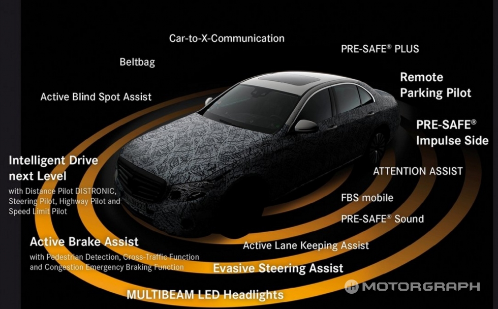 E클래스는 반자율 주행차 수준의 첨단·편의사양을 자랑한다. 먼저 차 스스로 완벽하게 전면, 후면, 평면 주차를 해내고 심지어 출차까지 자동으로 하는 파킹 파일럿 기능과 충돌 위험 시 브레이킹을 도와주는 액티브 브레이크 어시스트, 졸음 운전 시 경고해주는 어텐션 어시스트 등을 적용했다.