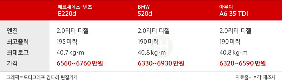 메르세데스-벤츠 신형 E클래스가 출시되면서 독일 3사의 경쟁이 더욱 흥미진진해졌다. 이 세그먼트는 BMW 5시리즈와 아우디 A6 등 쟁쟁한 경쟁자들이 함께 포진해 있는 곳으로, 이들은 매년 수입차 베스트셀링카 1~3위를 두고 치열한 경쟁을 벌인다. 브랜드를 대표하는 주력 모델의 대결인 만큼 결코 지고 싶지 않은, 승패 이상의 자존심 싸움이 펼쳐지는 것이다.