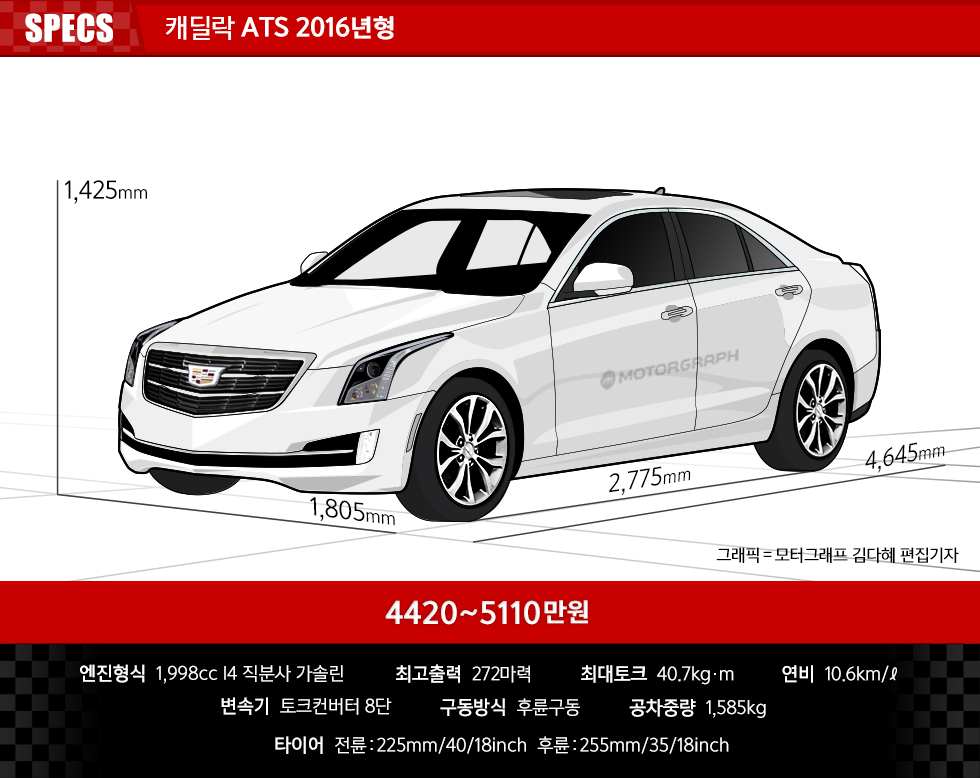 변속기가 바뀌고, 오토 스타트스톱이 기본을 장착되면서 연비는 소폭 상승했다. 하지만 여전히 부족한 감이 있다. 후발주자인 만큼 ‘숫자’에서는 기존 강자들을 압도할 필요도 있다. 물론 3시리즈나 C클래스가 ATS와 동일한 2.0리터 4기통 터보 엔진을 쓰고 있지만, 효율과 성능에서 적당한 타협을 이룬 모델도 판매하고 있다. 어찌보면 부족한 엔진 라인업이 ATS의 가장 큰 약점이라고 할 수 있다.