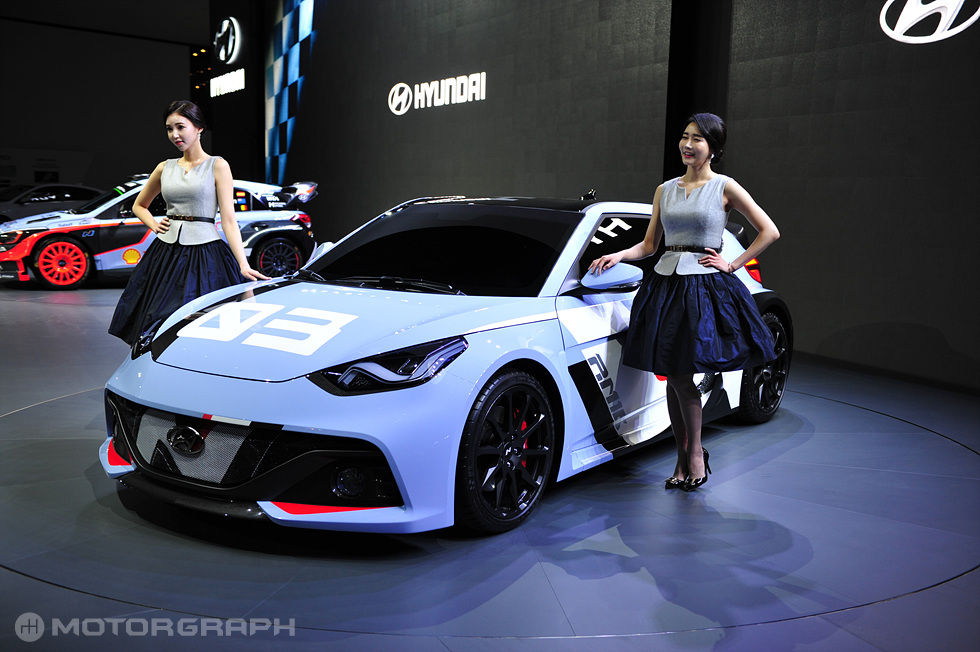 RM16 콘셉트는 현대차의 ‘고성능 N’ 개발 과정을 보여주는 모델이다. 길이 4260mm, 너비 1865mm, 높이 1340mm의 크기로, 고용량 터보차저를 장착한 고성능 세타Ⅱ 2.0 터보GDI 개선 엔진이 탑재돼 최고출력 300마력, 최대토크 39kg.m의 강력한 성능을 발휘한다.