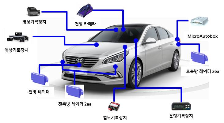 현대모비스의 쏘나타 자율주행차는 사람의 눈과 손, 발을 대신할 수 있도록 차량 앞·뒤·측면에 레이더 5개와 전방 카메라 1개, 제어장치(MicroAutobox) 등이 장착됐다. 각 레이더와 카메라 는 차 주변 360도를 감지해 각종 주행 정보를 제공한다.