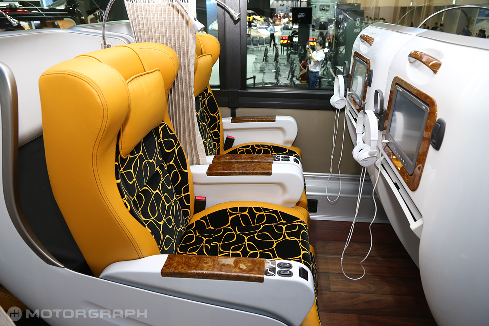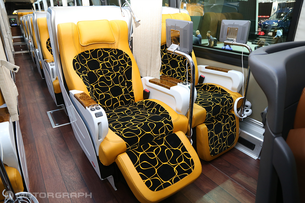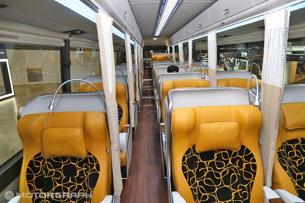우등버스에 비해 좌석수를 줄이면서 개별 좌석의 앞뒤 공간을 늘렸고, 의자를 전자동으로 최대 165°(우등버스 139°)까지 기울일 수 있다. 또, 조절식 목 베개와 고급화된 좌석 시트로 항공기 비즈니스 클래스 수준의 안락함을 제공한다. 여기에 탑승자 사생활 보호를 위해 좌석별 보호쉘과 커튼 등이 장착됐고, 이동 중에도 업무를 보거나 노트북을 사용할 수 있도록 개인용 접이식 테이블이 마련됐다.