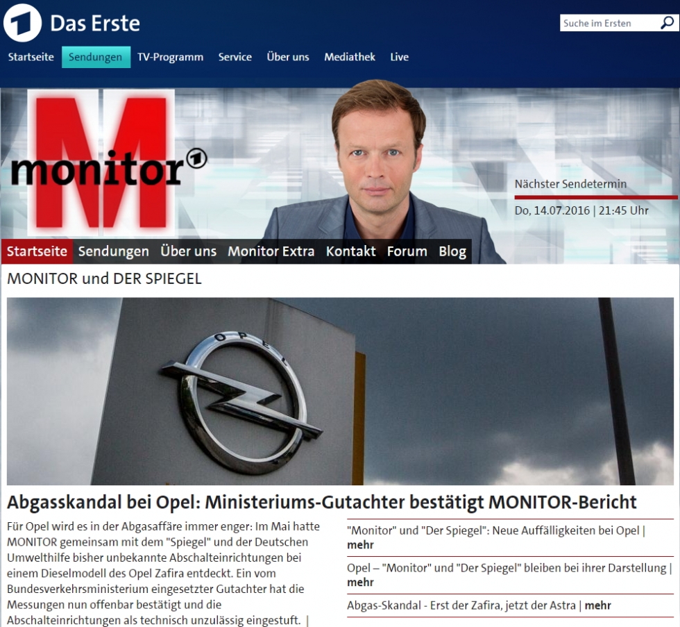 그리고 독일 제 1공영 방송인 아에르데 (ARD)의 한 축인 서부독일방송 베데아르(WDR)의 한 시사 프로그램에서도 오펠 문제를 심층 보도하기에 이릅니다. 공영방송과 진보 주간지, 그리고 친환경단체가 일제히 오펠의 조작 의심을 한 목소리로 비판하고 나서면서 오펠은 큰 궁지에 몰리게 됩니다. 상황이 이렇게 되자 보수 언론들은 오펠 편에서 진보 매체들을 비판하기 시작합니다.
