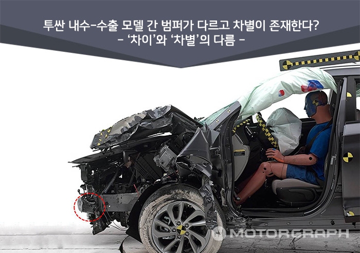 현대차는 끝으로 '현재 국내서 판매되는 투싼으로 스몰오버랩테스트를 실시해도 결과는 동일하다'면서 '차이와 차별은 다르다'고 적었다.