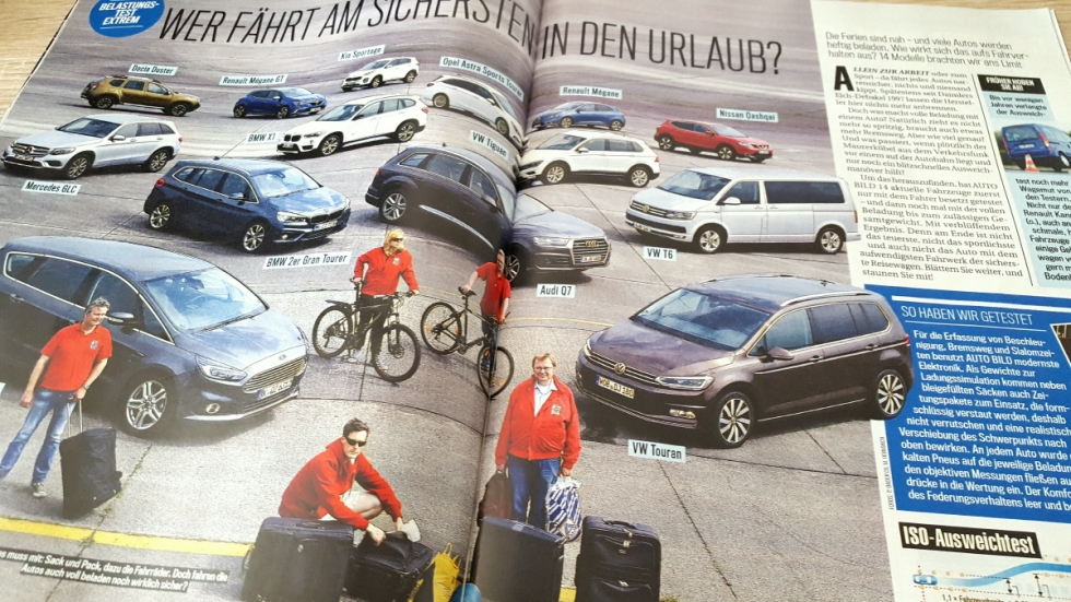 아우토빌트는 휴가철을 맞아 가족을 태우고 짐을 가득 실었을 때 차량의 주행 안전성이 어느 정도인지를 점검했습니다. 우선 운전자가 한 명만 탔을 때와 성인 두 명과 500kg 전후의 짐을 가득 실은 경우로 나눠 총 6가지 부분에 대한 평가를 했는데요. 짐칸 적재 능력, ISO 테스트, 제동력 테스트, 추월가속(80~120km/h) 테스트, 슬라롬 테스트, 안락함 평가 등이었습니다.