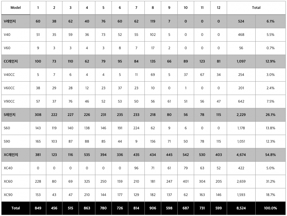 볼보코리아는 작년 8524대를 판매하며 전년 대비 29.1%의 높은 성장률을 기록했다. 이는 전체 수입차 시장의 성장률인 11.8%를 훨씬 상회하는 수치로, 7년 연속 두 자릿수의 성장을 의미하는 지표다.