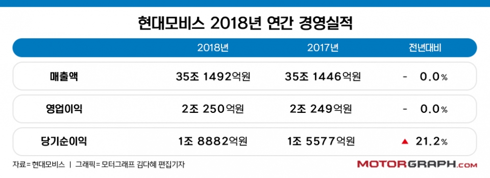현대모비스가 2018년도 경영실적을 25일 공시했다.