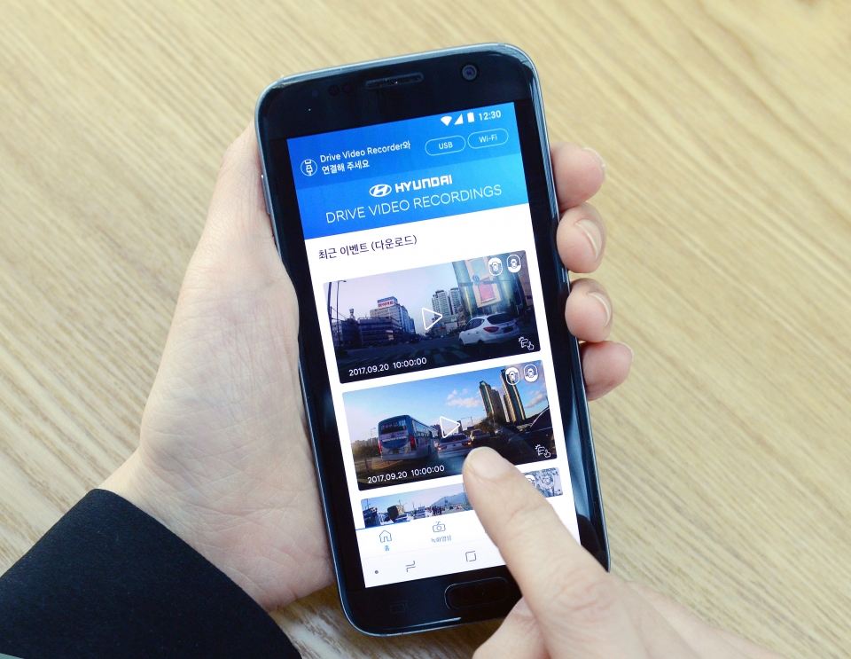 현대기아차의 주행영상기록장치는 빌트인 타입으로, ▲전후방 고화질 녹화 ▲주차 중 녹화(보조배터리 장착시) ▲충격감지 모드 ▲AVN 화면 연동 ▲스마트폰 연동 ▲eMMC 적용 및 관리 등 기능이 지원된다.