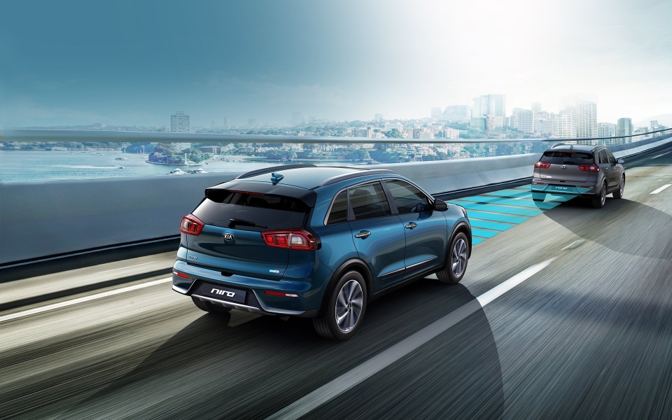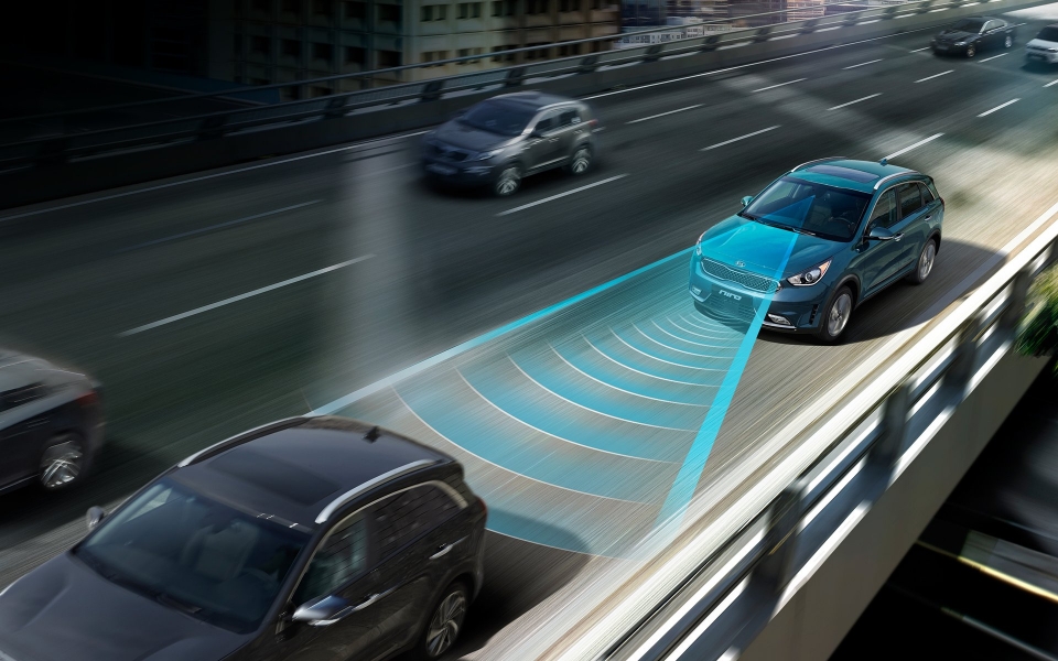 후측방 경고(RCTA): 좌우 시야가 막힌 주차 공간 등에서 후진 주행 시, 레이더가 차량 좌우 최대 약 20m 범위에서 접근하는 물체를 감지해 후방 카메라 영상에 접근 방향 경고 화살표를 표시하고, 경고음을 울려 운전자에게 다가오는 위험을 경고하는 기능이다.