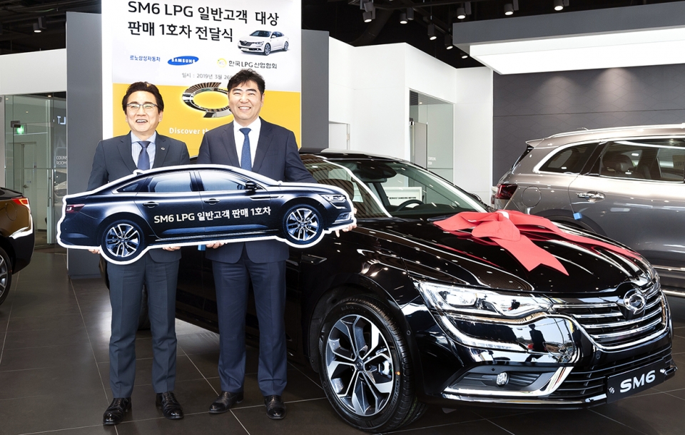 르노삼성은 지난 26일 서울 강남구 르노삼성자동차 수서대리점에서 LPG 일반판매 1호차 전달식을 가졌다. 일반판매 1호 LPG 차량을 구매한 주인공은 한국LPG산업협회 김상범 회장이다.